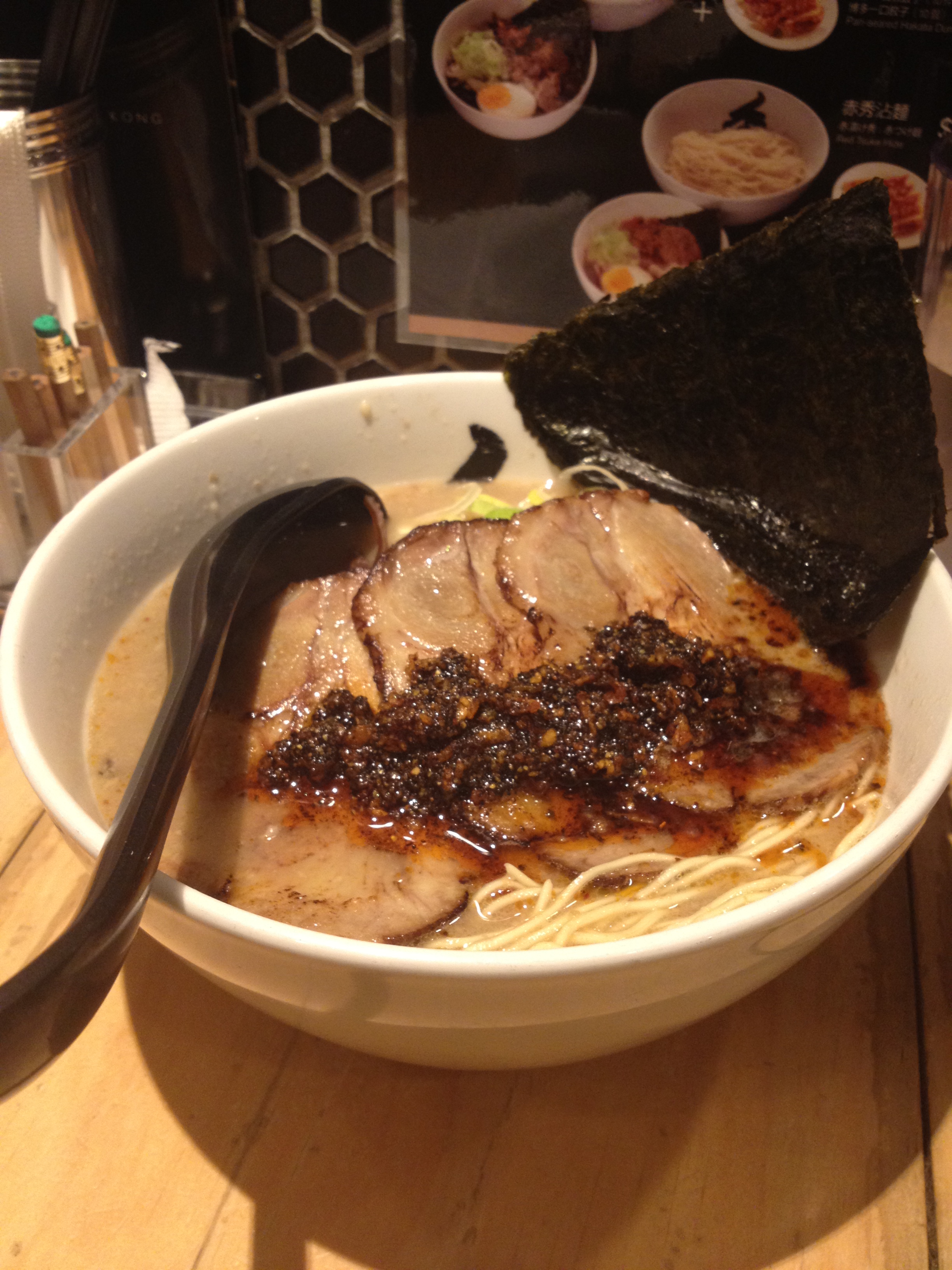 Being as ramen is borrowed a bit from Chinese noodle dishes it seems highly appropriate that Hong Kong-ers have taken to it in their droves. However, while in Japan there are very distinct varieties – miso (popular in Hokkaido), shoyu (a good Kanto staple), salt (a lighter broth), and tonkotsu (rich pork broth base from Kyushu) – in the SAR, tonkotsu is the clear winner. Which is fine for me, cos it’s my favourite.